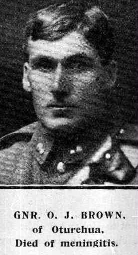 BROWN — In loving memory of Driver Oscar John Brown, who died at Abbieville, France, on February 26, 1918, beloved second son of the late Charles Brown and Ellen Brown, Oturehua.