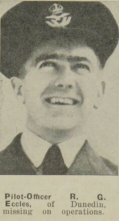 In Dunedin's Southern Cemetery is recorded the death on air operations "over Holland" of Raymond Gordon Eccles in 1941.